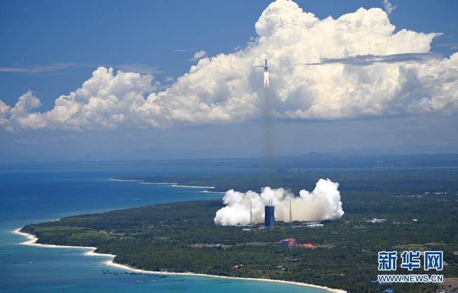 2020年7月23日12時41分,我國在海南島東北海岸中國文昌航天發(fā)射場,用長征五號遙四運(yùn)載火箭將我國首次火星探測任務(wù)“天問一號”探測器發(fā)射升空。新華社記者 郭程 攝