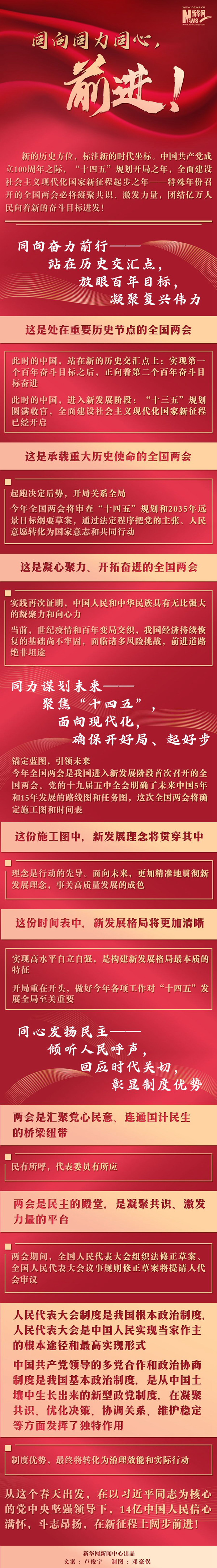 中國共產(chǎn)黨成立100周年之際,“十四五”規(guī)劃開局之年,全面建設(shè)社會主義現(xiàn)代化國家新征程起步之年——特殊年份召開的全國兩會必將凝聚共識、激發(fā)力量,團(tuán)結(jié)億萬人民向著新的奮斗目標(biāo)進(jìn)發(fā)。
