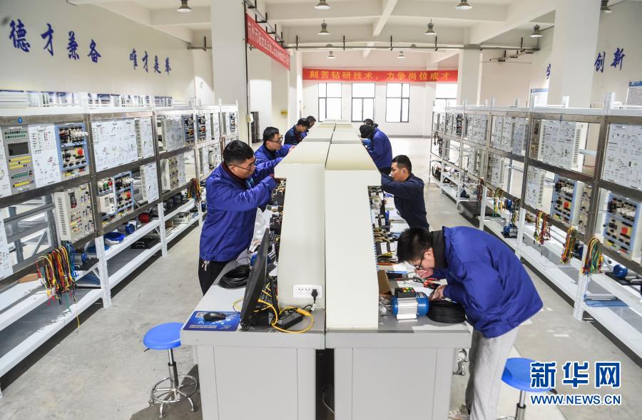2020年12月6日,浙江省杭州市臨安區(qū)總工會組織的“工匠杯”電工技能大賽舉行。這是技術(shù)工人在參加電工技能比賽。新華社記者 徐昱 攝
