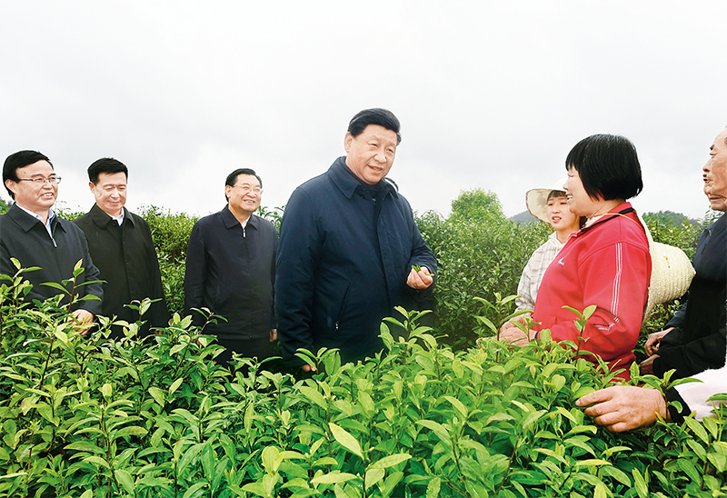 2020年4月20日至23日,中共中央總書記、國家主席、中央軍委主席習(xí)近平在陜西考察。這是4月21日,習(xí)近平在安康市平利縣老縣鎮(zhèn)蔣家坪村女媧鳳凰茶業(yè)現(xiàn)代示范園區(qū),同茶農(nóng)們親切交談。 新華社記者 謝環(huán)馳/攝