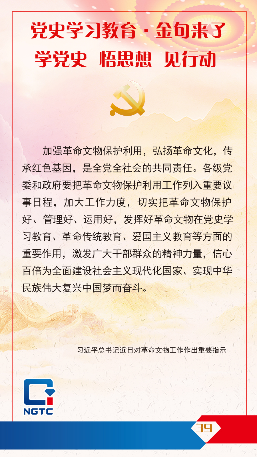黨史學(xué)習(xí)教育·金句來(lái)了丨加強(qiáng)革命文物保護(hù)利用,弘揚(yáng)革命文化,傳承紅色基因,是全黨全社會(huì)的共同責(zé)任