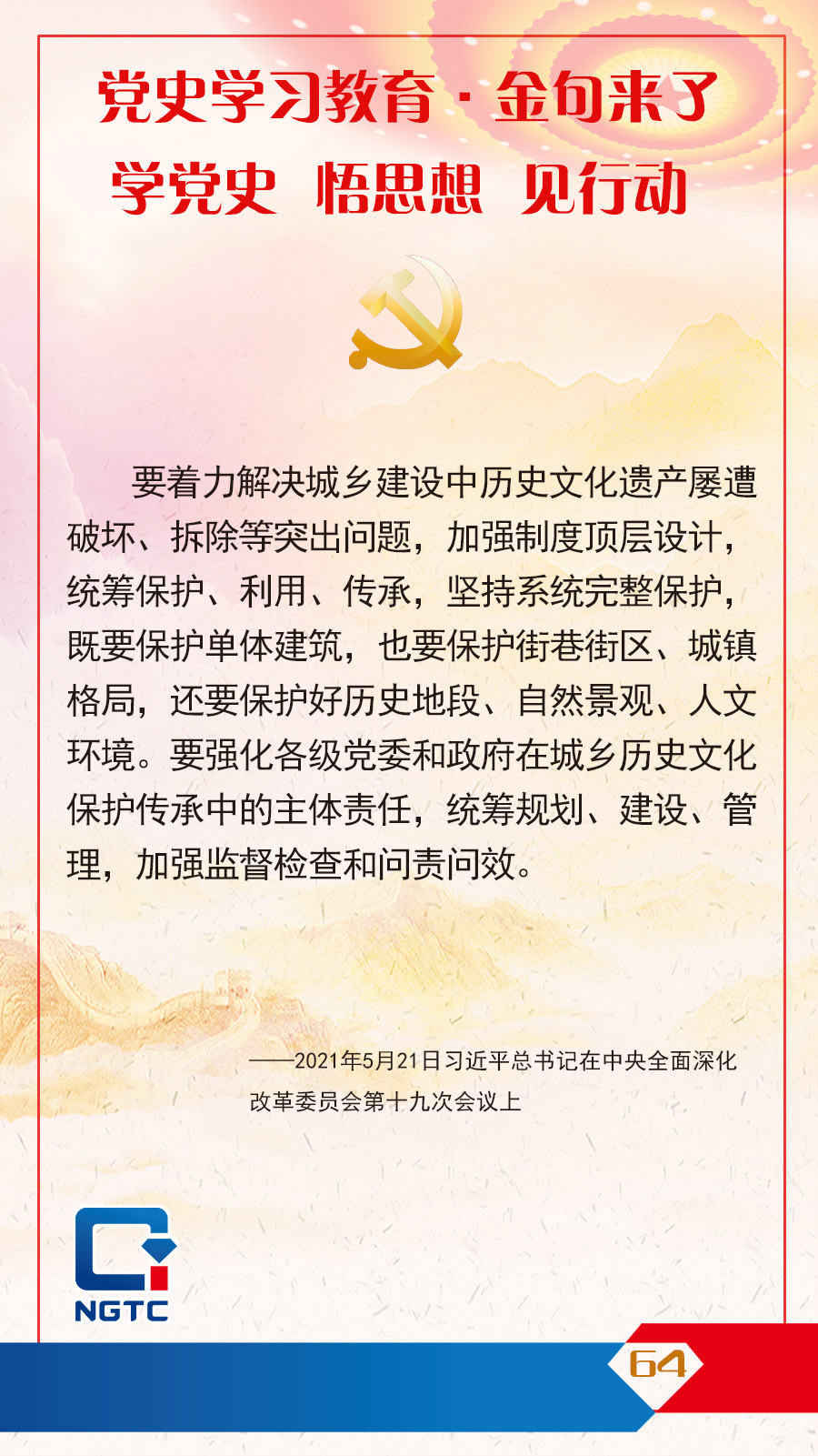 黨史學(xué)習(xí)教育·金句來了丨堅(jiān)持系統(tǒng)完整保護(hù),既要保護(hù)單體建筑,也要保護(hù)街巷街區(qū)、城鎮(zhèn)格局