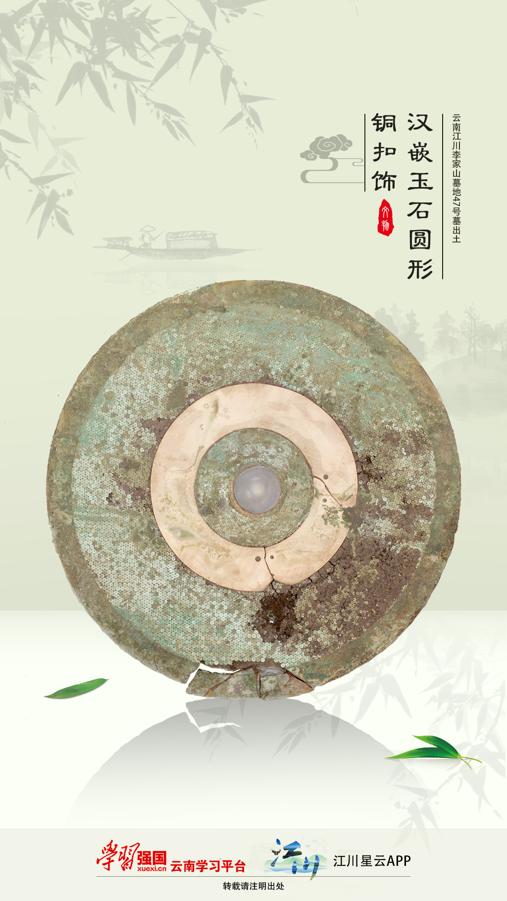 云南玉溪江川區(qū):滇物古跡·漢嵌玉石圓形銅扣飾