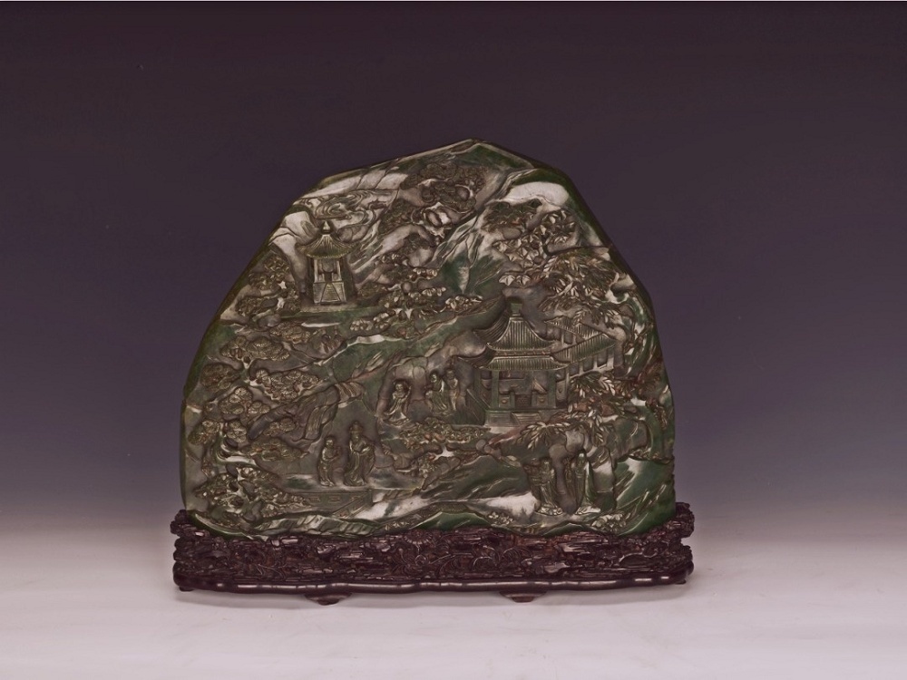——雕樓閣人物碧玉山子