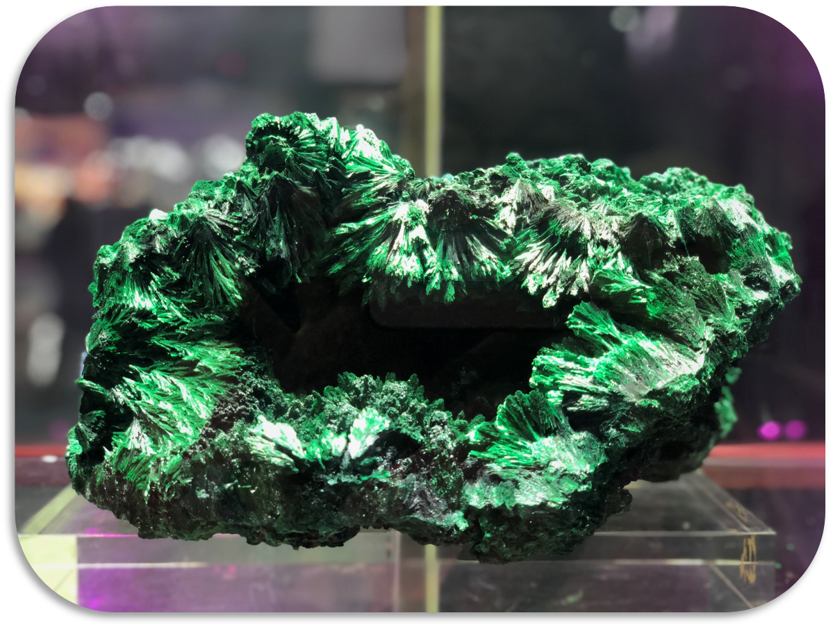 孔雀石形成美麗晶體或者集合體非常難得,雖然早已不作為煉銅的原料,但隨著大量銅礦資源被開發(fā)利用,很多孔雀石原礦也遭到了剝蝕、破壞。正因為作為觀賞石、寶玉石原料的孔雀石十分有限,愈發(fā)顯示出自然資源的珍貴,保護利用好大自然的饋贈,有序開發(fā)利用自然界的資源,才能保障人與自然的和諧共生、永續(xù)發(fā)展。