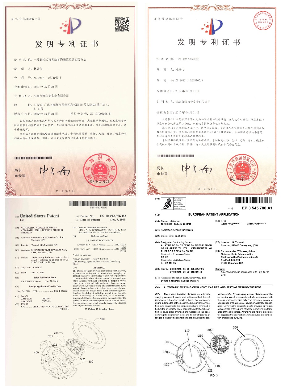 Y&M緣與美珠寶的“瑰麗鑲嵌技術(shù)”獲得中寶協(xié)(GAC)頒發(fā)的科學(xué)技術(shù)獎二等獎,在珠寶行業(yè)首次創(chuàng)新運用中國傳統(tǒng)工藝榫卯技術(shù)原理和二次鑲嵌技術(shù),通過精確模擬完美鉆石切割技術(shù),使鉆石的裝飾效果倍增,并入選中寶協(xié)(GAC)寶石鑒定師考試指定教材《珠寶玉石學(xué)》。