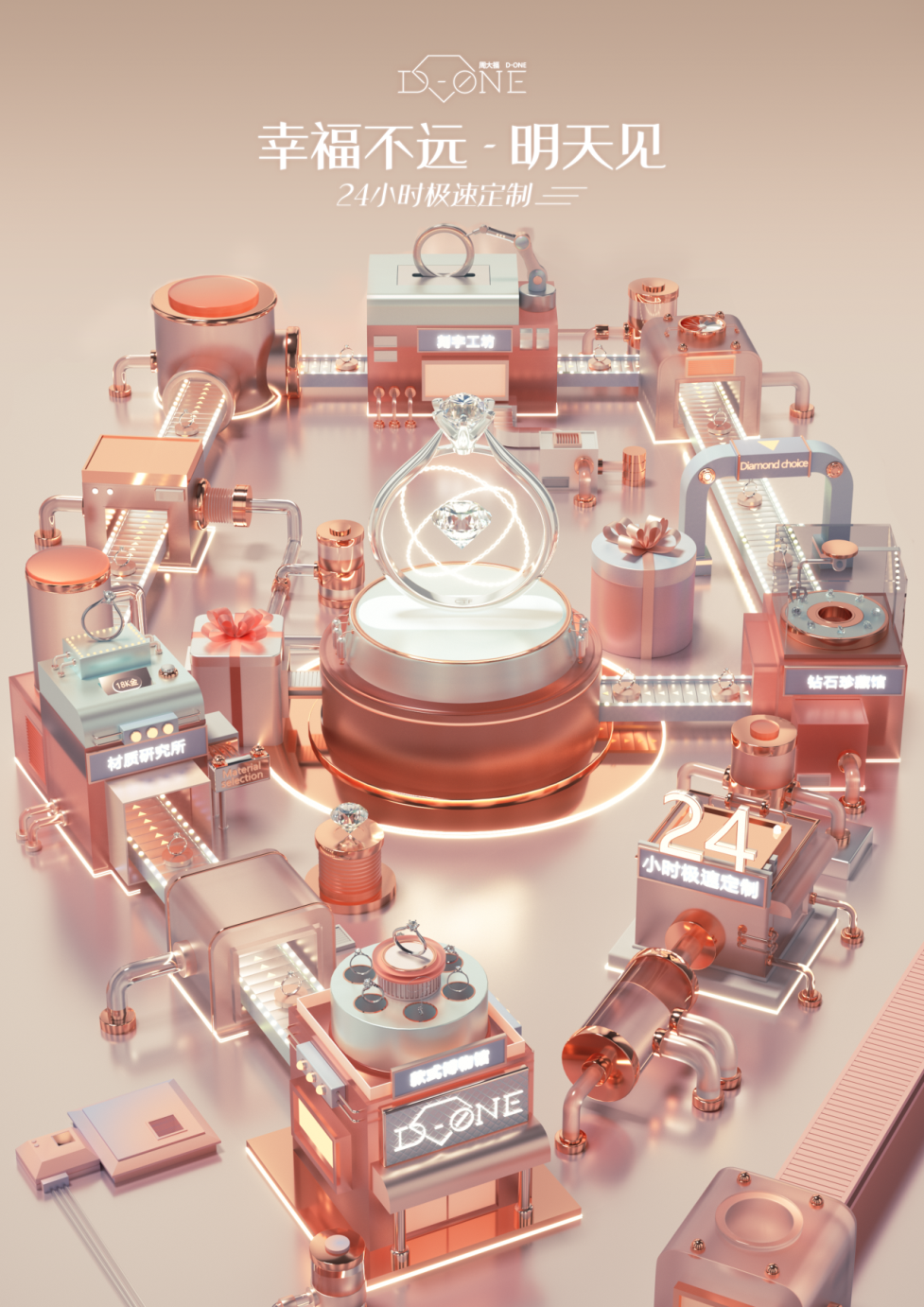 隨著顧客對(duì)定制化珠寶產(chǎn)品及獨(dú)特體驗(yàn)的需求與日俱增,周大福積極發(fā)展“顧客主導(dǎo)制造”的業(yè)務(wù)模式,旨在于更短時(shí)間內(nèi)滿足顧客需求。周大福構(gòu)建起珠寶數(shù)碼化定制平臺(tái)“D-ONE”,讓顧客可以按個(gè)人喜好挑選鉆石及產(chǎn)品款式,為顧客打造專屬珠寶服務(wù)、提供獨(dú)一無(wú)二的特色體驗(yàn)。周大福的珠寶數(shù)碼化定制平臺(tái)“D-ONE”憑借高度自動(dòng)化的生產(chǎn)線及智能化的供應(yīng)鏈,讓相關(guān)部門能夠在顧客下單后24小時(shí)內(nèi)完成定制產(chǎn)品的生產(chǎn)及發(fā)貨準(zhǔn)備,使備貨效率遠(yuǎn)超一般情況下15—30天的平均生產(chǎn)時(shí)間。周大福不斷豐富“D-ONE”的定制選項(xiàng),引入“HEARTS ON FIRE”和“FOREVERMARK”的鉆石款式,增添對(duì)戒等產(chǎn)品種類?!癉-ONE”借助物聯(lián)網(wǎng)技術(shù),創(chuàng)新定義了生產(chǎn)者與消費(fèi)者之間的關(guān)系,同時(shí)幫助周大福實(shí)現(xiàn)極速定制服務(wù),以快速應(yīng)對(duì)市場(chǎng)變化。