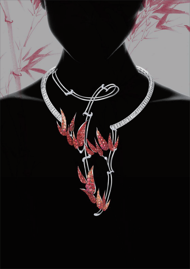 但是運(yùn)用于珠寶首飾設(shè)計(jì)時(shí)需要注意一個(gè)問題,不僅是視覺上需要取得平衡,在重量上也要維持首飾中軸兩側(cè)相近,因?yàn)槭罪検怯糜谂宕鞯模S著人的運(yùn)動(dòng),重心會(huì)相應(yīng)擺動(dòng),為了維持首飾最初的設(shè)計(jì)意圖,就需要將配重的因素考慮進(jìn)去。