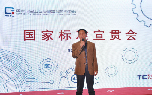 NGTC標(biāo)準(zhǔn)化部主任楊立信代表主辦方致辭。他表示,《黃色鉆石分級(jí)》、《祖母綠分級(jí)》兩項(xiàng)國(guó)家標(biāo)準(zhǔn)為我國(guó)珠寶市場(chǎng)建立了語(yǔ)言及行為的規(guī)范,為珠寶行業(yè)的發(fā)展奠定了堅(jiān)實(shí)的基礎(chǔ),國(guó)家標(biāo)準(zhǔn)是行業(yè)健康有序發(fā)展的基石。標(biāo)準(zhǔn)在規(guī)范珠寶行業(yè)市場(chǎng)中發(fā)揮的重要作用,并倡議珠寶企業(yè)家們一起加入標(biāo)準(zhǔn)化建設(shè)的工作中來(lái),合力推進(jìn)我國(guó)珠寶行業(yè)健康、繁榮發(fā)展。