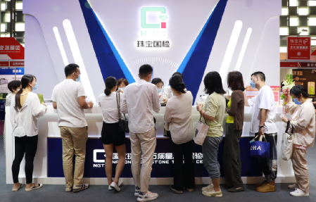 6月26日是上海國際珠寶首飾展覽會(以下簡稱上海展)開展的第三天。恰逢周末,自然資源部珠寶玉石首飾管理中心(國家珠寶玉石質量監(jiān)督檢驗中心)(NGTC)【以下簡稱珠寶國檢(NGTC)】展位(展位號:1C01-1C12)迎來人潮高峰,消費者紛紛拿著準備購買的珠寶玉石首飾產品前來免費檢測、咨詢。