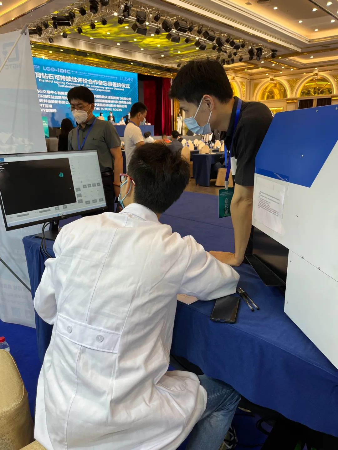 珠寶國檢集團(tuán)廣州公司珠寶鑒定師為與會嘉賓詳細(xì)介紹了珠寶國檢集團(tuán)自主研發(fā)的鉆石首飾觀察鑒定儀DDO 3210N,并提供檢測咨詢、現(xiàn)場答疑服務(wù)。