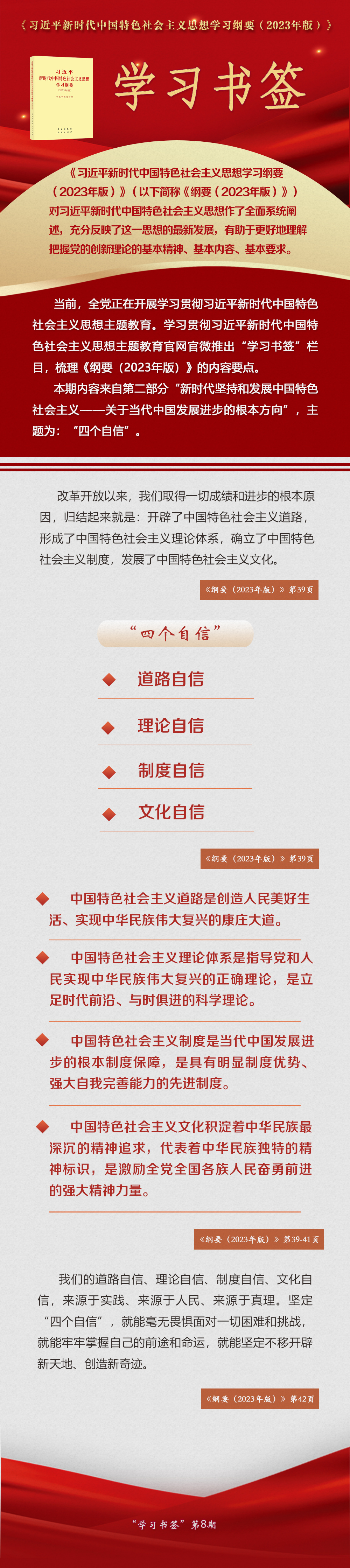 《習(xí)近平新時代中國特色社會主義思想學(xué)習(xí)綱要(2023年版)》 學(xué)習(xí)書簽丨“四個自信”