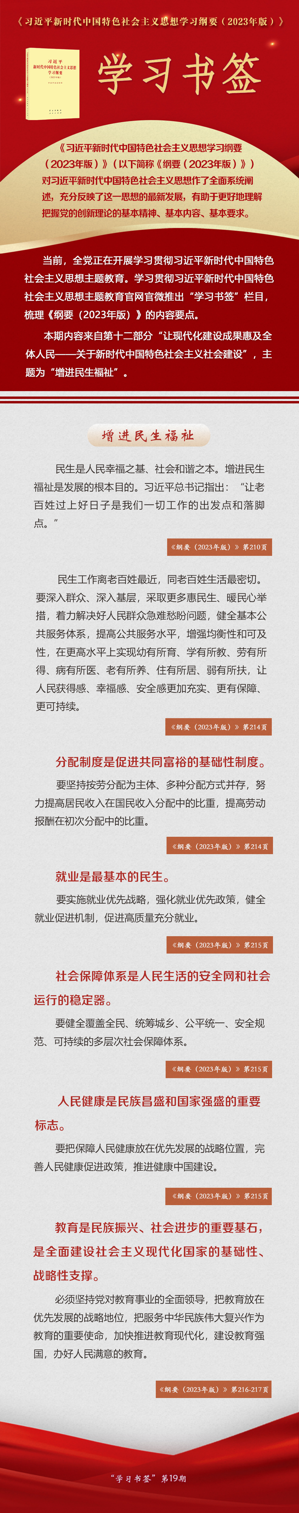 《習(xí)近平新時代中國特色社會主義思想學(xué)習(xí)綱要(2023年版)》 學(xué)習(xí)書簽丨增進(jìn)民生福祉