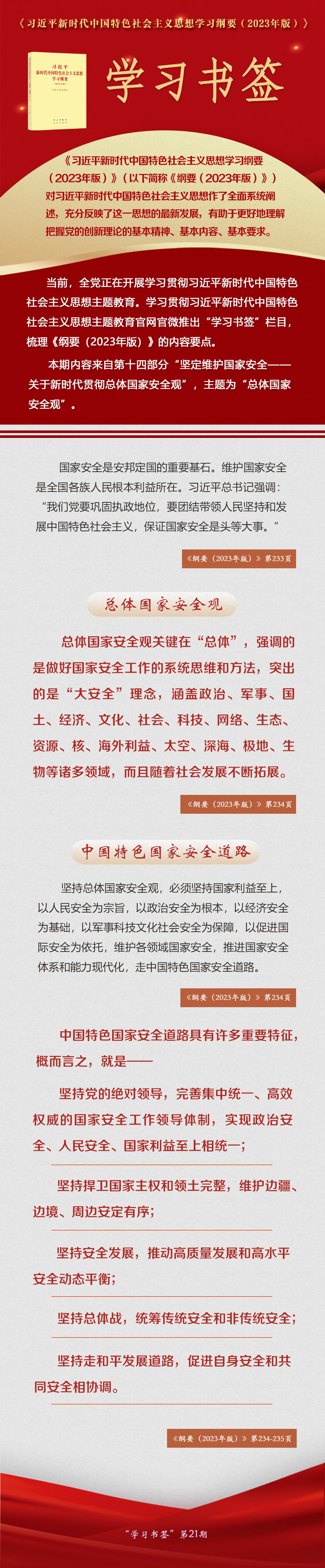 《習(xí)近平新時(shí)代中國(guó)特色社會(huì)主義思想學(xué)習(xí)綱要(2023年版)》 學(xué)習(xí)書簽丨總體國(guó)家安全觀