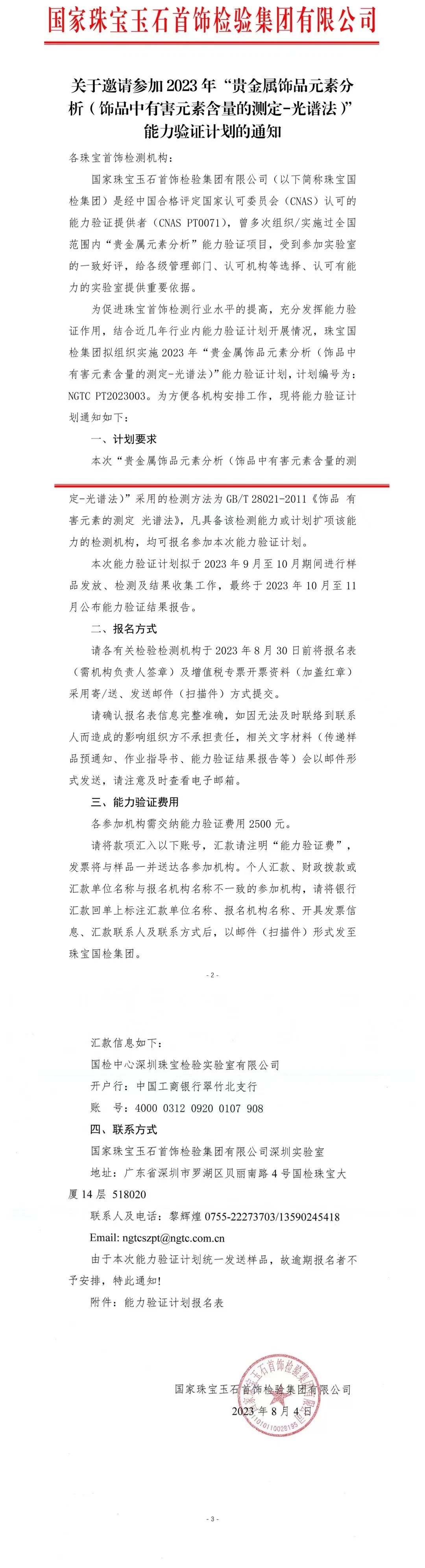 關(guān)于邀請參加2023年“貴金屬飾品元素分析(飾品中有害元素含量的測定-光譜法)”能力驗證計劃的通知