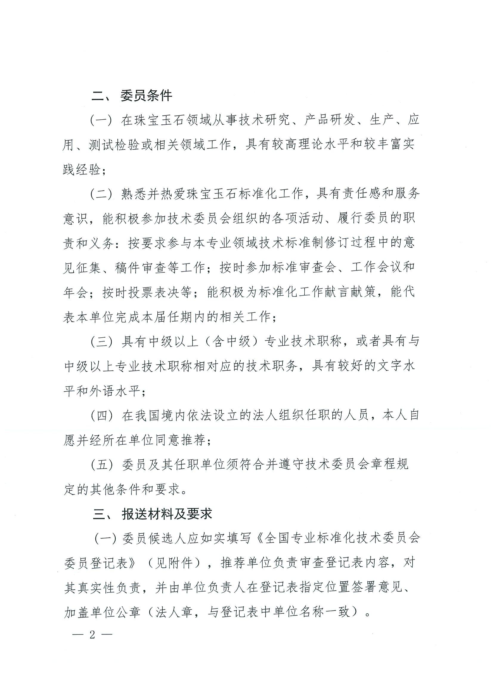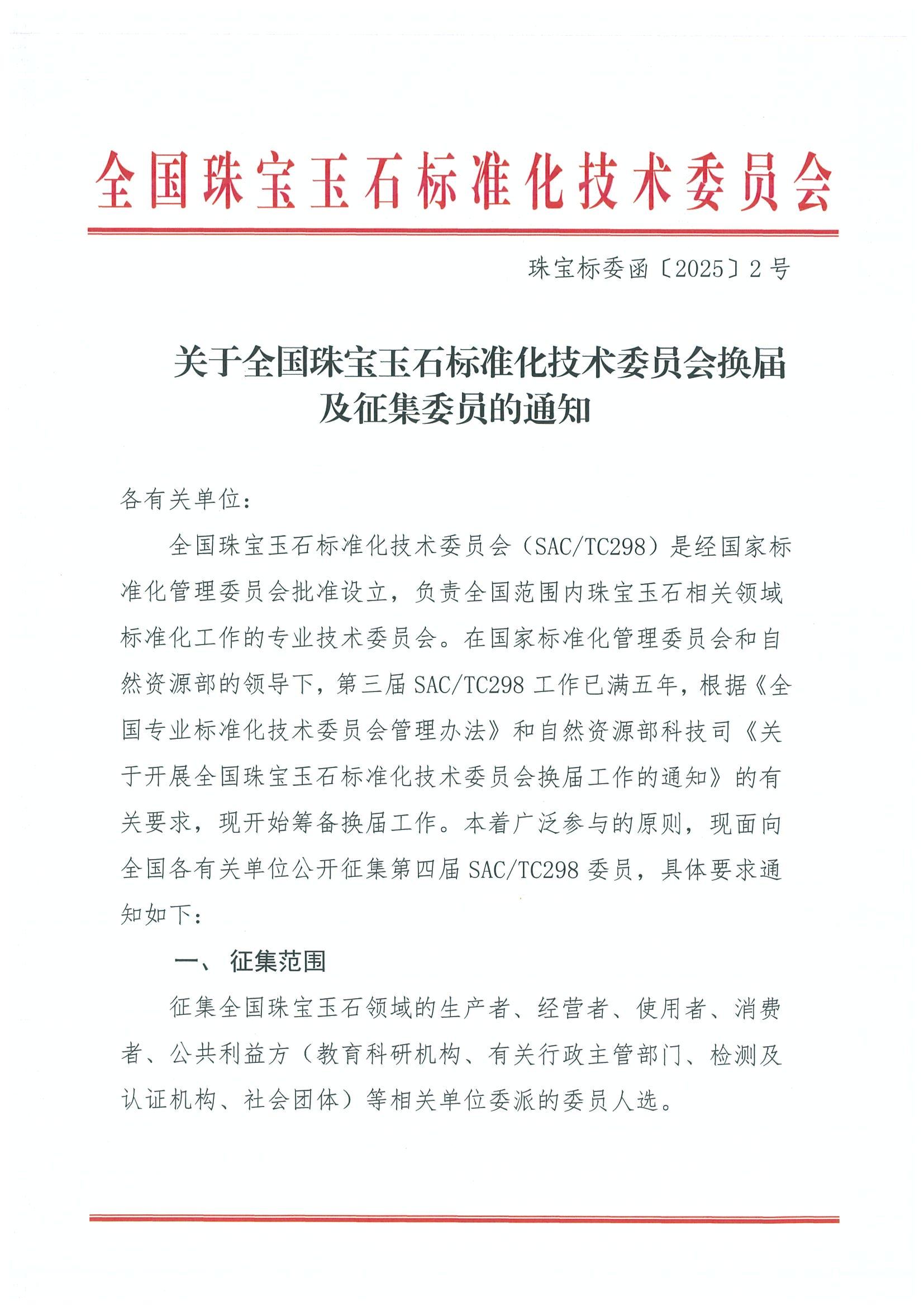 關(guān)于全國(guó)珠寶玉石標(biāo)準(zhǔn)化技術(shù)委員會(huì)換屆及征集委員的通知