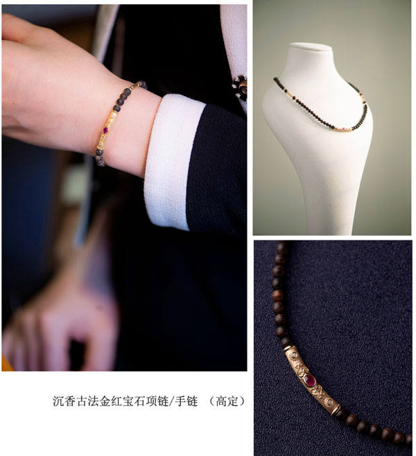 每一塊沉香都甄選自油脂濃郁、芳香綿長的上品香材,再加入既不破壞沉香原本品相、又能增添色彩和靈動意蘊的黃金、珠寶、玉石、K金等材質進行古法創(chuàng)新設計,通過行云流水的手工技法對其細細打磨鑲嵌,最終形成了一件融合東西方審美、獨一無二、優(yōu)雅精致的手工沉香珠寶。這種沉香珠寶適合各種年紀的女性,也適合任何場合的不同穿搭。