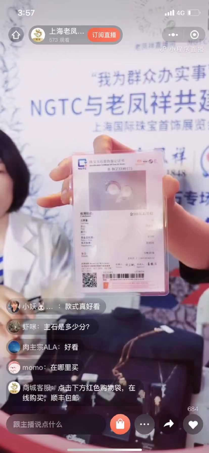 活動(dòng)由NGTC+直播間聯(lián)合老鳳祥VIP群直播在線同步播出,雙方依托各自在科學(xué)研究、檢測(cè)服務(wù)、教育培訓(xùn)、科普宣傳、產(chǎn)品設(shè)計(jì)、文創(chuàng)開(kāi)發(fā)方面的優(yōu)勢(shì),為廣大消費(fèi)者答疑解惑,進(jìn)行珠寶文化消費(fèi)引導(dǎo)?;顒?dòng)吸引7190余人次在線收看,線下觀眾約150人。