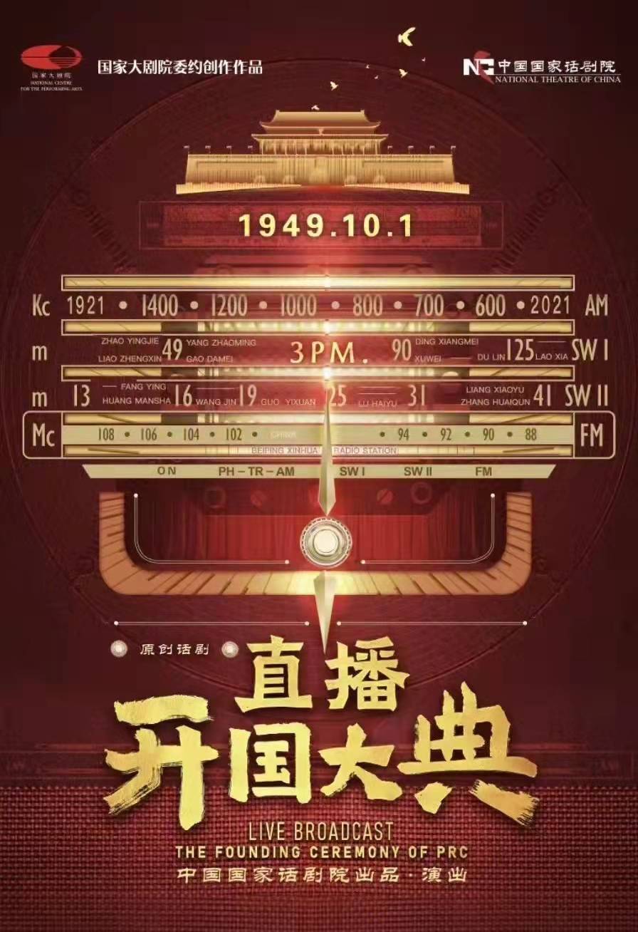 話劇《直播開國大典》聚焦1949年新中國成立的偉大歷史時刻,將開國大典的幕后直播故事以文藝作品的形式搬上了舞臺。1949年8月中旬,北平新華廣播電臺接到“直播開國大典”的實況轉(zhuǎn)播任務(wù),在時間緊、任務(wù)重、設(shè)備短缺、特務(wù)潛伏的情況下,這支廣播隊伍拿出沖天干勁克服重重障礙,最終圓滿完成任務(wù),向全世界發(fā)出新中國的“成立之聲”。