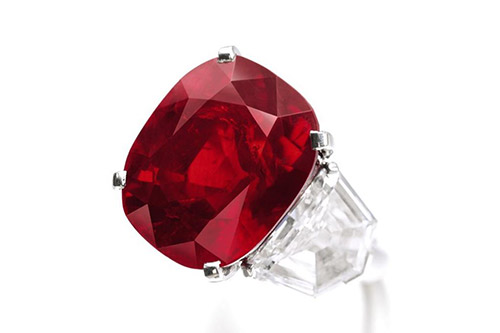 緬甸作為古老的紅寶石產(chǎn)地,幾個世紀(jì)以來陸續(xù)發(fā)現(xiàn)過許多大顆粒、高品質(zhì)的紅寶石。2015年5月,一顆25.59克拉的緬甸“鴿血紅”紅寶石在拍賣會上以2,625萬瑞士法郎(約合3,033萬美元)落槌成交,創(chuàng)下了當(dāng)時紅寶石最高成交價紀(jì)錄及非鉆石類寶石最高成交價紀(jì)錄。這顆名為“日出紅寶石”(The SunriseRuby)的晶體,曾是法國珠寶商卡地亞的收藏品,這顆紅寶石的成交價也刷新了當(dāng)時卡地亞珠寶的拍賣成交價紀(jì)錄。