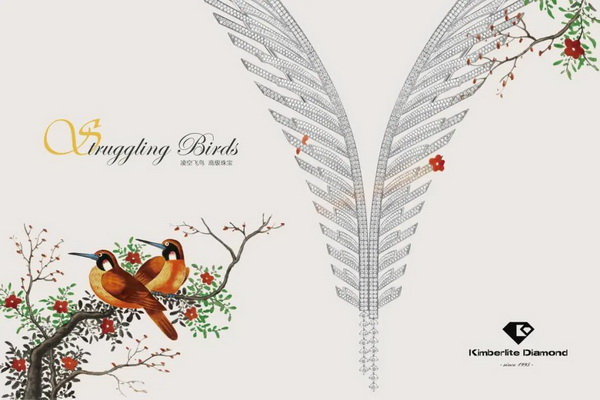 “凌空飛鳥”高級珠寶套系靈感源自飛鳥展翅的動態(tài)瞬間,通過對鳥類骨架的藝術(shù)化處理,彰顯騰飛的生命活力。作品采用雙層結(jié)構(gòu)設(shè)計,勾勒翅膀的細密輪廓,鑲嵌璀璨生輝的美鉆,以精湛工藝展現(xiàn)鳥兒的高雅姿態(tài),傳遞無拘無束、自由翱翔的美好愿景。生動靈性的鳥兒展示了珠寶與自然的結(jié)合,豐富地表現(xiàn)出了藝術(shù)與珠寶設(shè)計融合的巧思。而展翅翱翔的鳥兒掙脫萬有引力的束縛,也體現(xiàn)了大自然的靈動和自由之美。